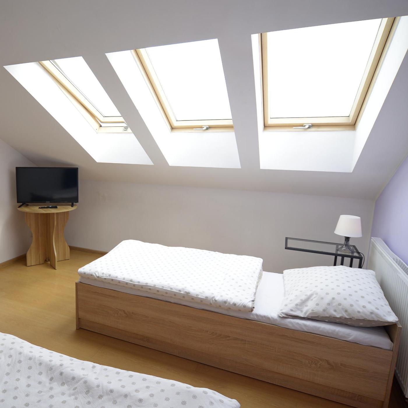 Pokój trzyosobowy. Ten pokój trzyosobowy dysponuje łazienką oraz telewizorem z płaskim ekranem i dostępem do kanałów kablowych. W tej opcji zakwaterowania zapewniono 3 łóżka. Pokój Trzyosobowy - 4 osobowy. Powierzchnia pokoju ok.: 19 mkw. ;
