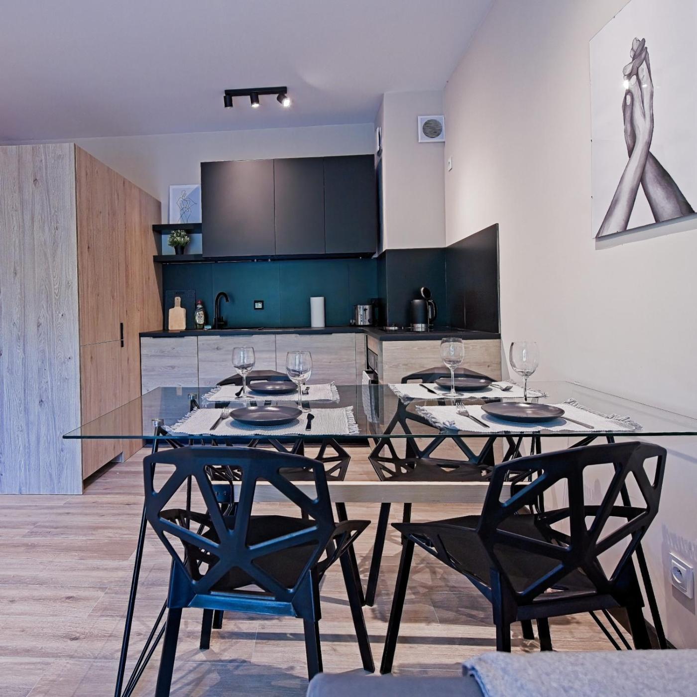 W apartamencie do dyspozycji gości przygotowano balkon, sypialnię (1), salon oraz aneks kuchenny z doskonałym wyposażeniem. Goście mają do dyspozycji telewizor z płaskim ekranem.