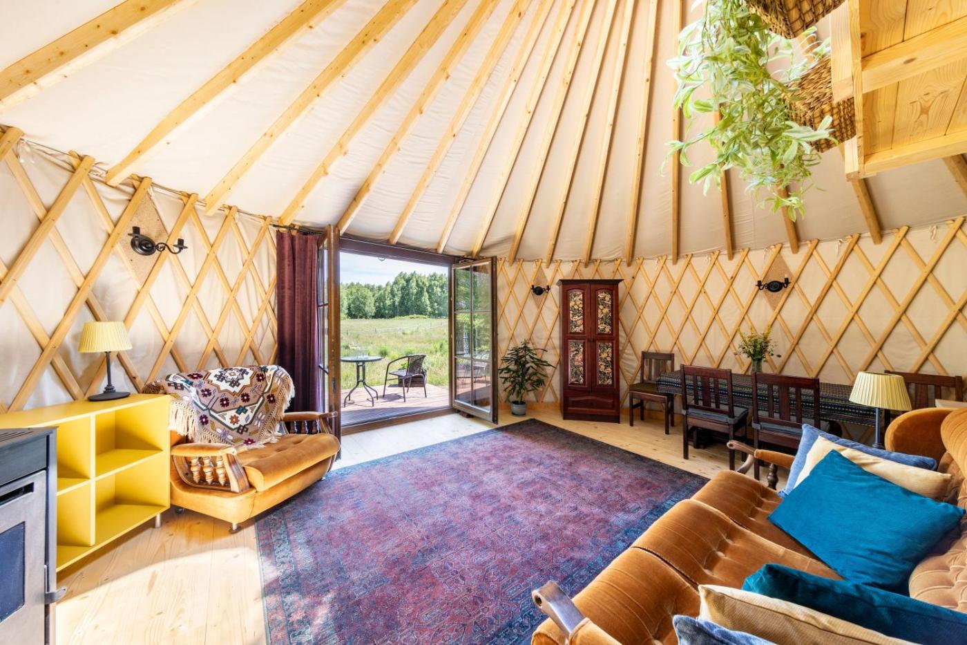 Namiot. This tent features a fireplace. Meals can be prepared in the well-fitted kitchenette, which has a stovetop, a refrigerator and kitchenware. The tent features a private entrance, a tea and coffee maker, a terrace with garden views as well as a private bathroom boasting a shower. The unit has 2 beds. Namiot - 4 osobowy. Powierzchnia pokoju ok.: 35 mkw.