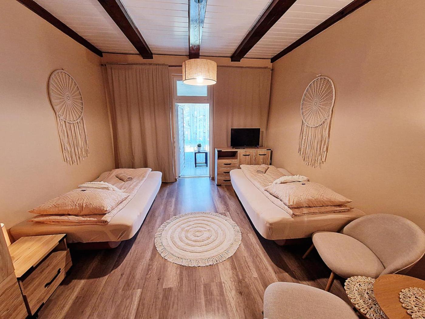 Apartament z 1 sypialnią. Boasting a private entrance, this apartment also includes 1 bedroom, a seating area and 1 bathroom with a shower and a bidet. Guests can make meals in the kitchen that is fitted with a stovetop, a refrigerator, kitchenware and a microwave. Featuring a terrace with garden views, this apartment also offers a dining area and a flat-screen TV. The unit has 2 beds. Apartament - 4 osobowy. Powierzchnia pokoju ok.: 38 mkw.